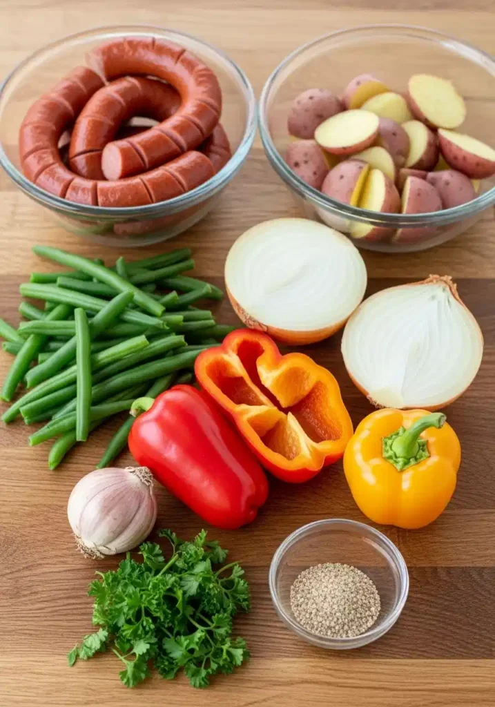 Begin by washing and chopping all your vegetables. Slice the kielbasa into rounds. This preparation will help everything cook evenly.